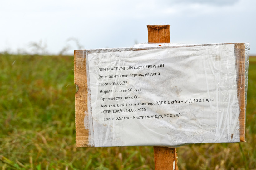 В этом году из 11 тысяч гектаров площадей 359 гектаров засадили льном. И снова проводят эксперимент: к масличному добавили новый сорт, который используется в кулинарной промышленности.