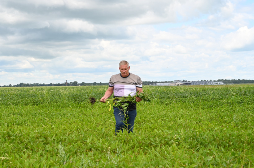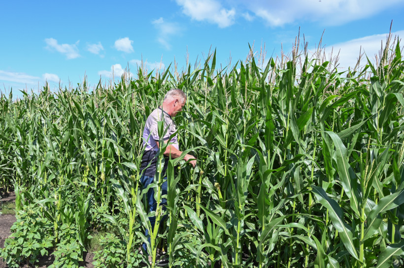 — Это поздний гибрид, специально сеяли, чтобы он был при уборке зеленый, чтобы была высокая питательность початка. Как раз к концу августа достигнет идеального состояния для сенажа. Кукуруза — это и клетчатка, и крахмал, и протеин для коровок. А еще на полях после кукурузы хорошо растет соя — в земле остается много удобрений, — говорит Александр Шишаев.