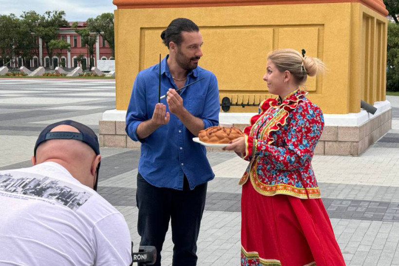 Благовещенск стал съемочной площадкой для нового выпуска программы НТВ «Поедем, поедим!». Ведущий Федерико Арнальди, только прилетев в Приамурье, сразу отправился на набережную Амура, где развернулись съемки.