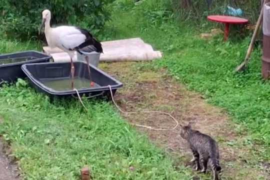 — Кот тоже уже ждет не дождётся, когда этот рыбный конкурент улетит, — улыбается Антон и добавляет: — Сейчас подыскиваю место, где кормится много аистов. Буду увозить подальше, чтобы обратную дорогу не запомнил.