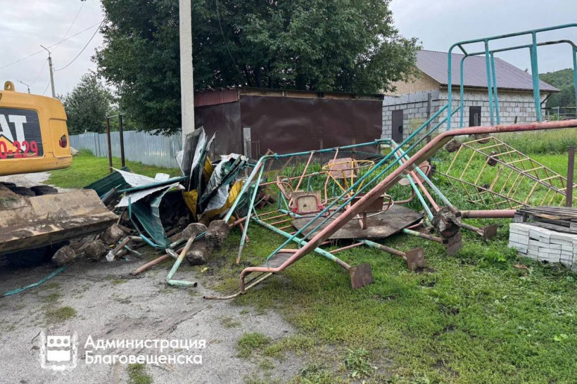 На детской площадке в благовещенском поселке Белогорье сносят старые качели, горки и тренажеры. Устаревшие малые архитектурные формы в ближайшее время заменят на новые. Об этом 26 августа сообщили в администрации амурской столицы.