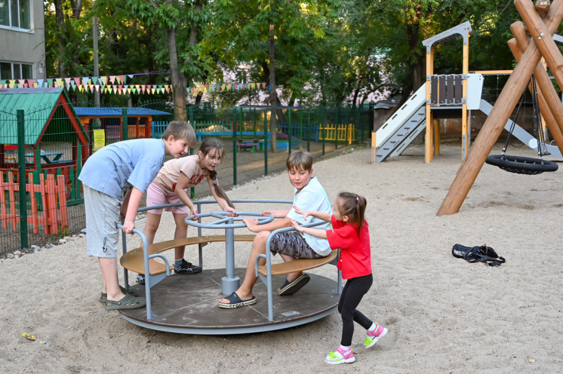 Новая карусель, игровой комплекс с канатами, горка и песок вместо ржавых железных турников, скрипучей качели и вечной лужи после дождя. Страшно представить, как дети играли на площадке до ее обновления. Теперь же ребят со двора домой не заманить. Самые маленькие, вооружившись ведерками и лопатками, лепят куличики в новой песочнице, кружатся на карусели или катаются с горки. Дети постарше подтягиваются на турниках или ловко карабкаются по канатной лестнице, соревнуются в силе и ловкости на новеньких уличных тренажерах.