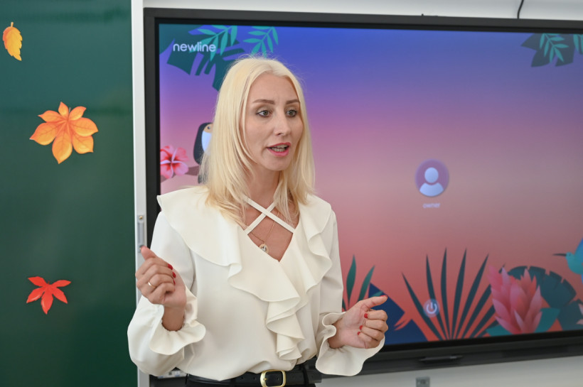 — Школу прославляют не только стены с самыми лучшими лабораториями, но и успехи учеников и педагогов. Владимир Владимирович Путин, наш президент, сказал, что нам нужно обеспечить технологическое лидерство, суверенитет, чтобы никто никогда не смог нашей России что-то запрещать или указывать. Мы должны быть абсолютно самостоятельными. И сила наша — в наших знаниях! Дорогие ребята, учитесь хорошо! — произнесла речь Светлана Вячеславовна.