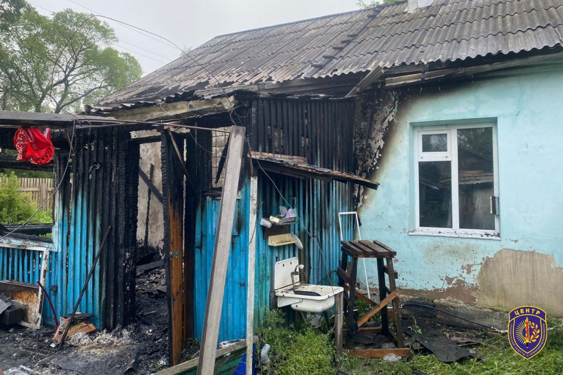 В результате пожара веранда на входе в одну из половин дома серьезно повреждена огнем. При этом сама квартира пострадала минимально: обгорел лишь вход в дом, но квартира закопчена.