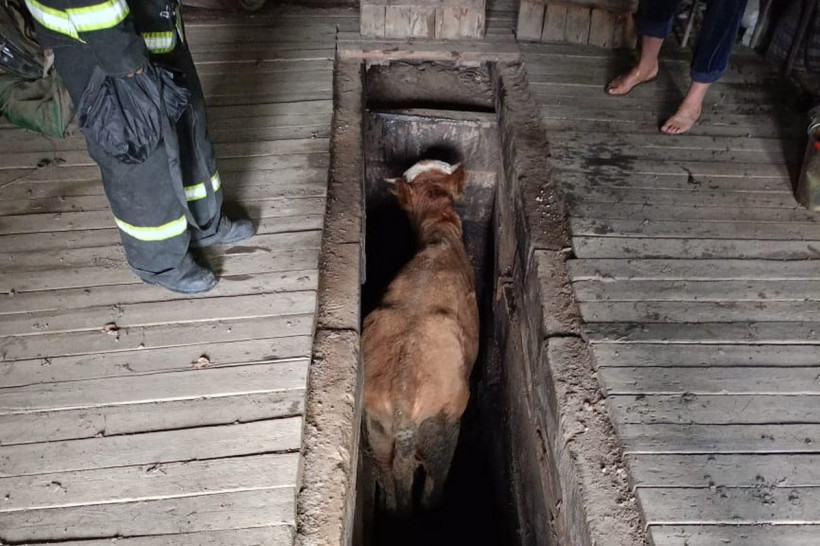 Как оказалось, рогатый провалился в смотровую яму в гараже дома по переулку Трудовому, 5. Самостоятельно хозяева постройки и владельцы скота вызволить его не смогли. Поэтому на подмогу на пожарном автомобиле подоспел дежурный караул. Благодаря оперативным действиям и слаженной работе спасателей животное аккуратно извлекли из ямы без повреждений.