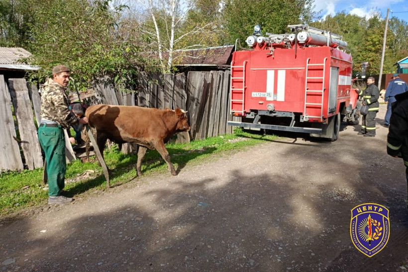 Необычное происшествие случилось 2 сентября в Селемджинском районе. Около 15:10 жители села Февральское сообщили в пожарную часть № 54, что молодому быку срочно нужна помощь спасателей.