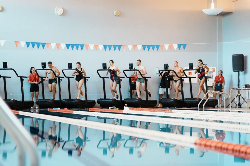 В министерстве по физической культуре и спорту Приамурья рассказали, что каждый день спортсмены выполняют непростые комплексы. К примеру, стартовый назывался «Необычный триатлон» и проходил на территории ФОКа одного из кампусов ДВФУ. Этот комплекс предполагал три вида испытаний. Сначала была гребля на тренажере. Мужчины должны были «проплыть на веслах» 2000 метров, а женщины — 1750. Затем участники устремились в бассейн. Каждому из них нужно было проплыть по 125 метров. А завершали свое выступление атлеты бегом на 2000 метров по реверсивной дорожке.