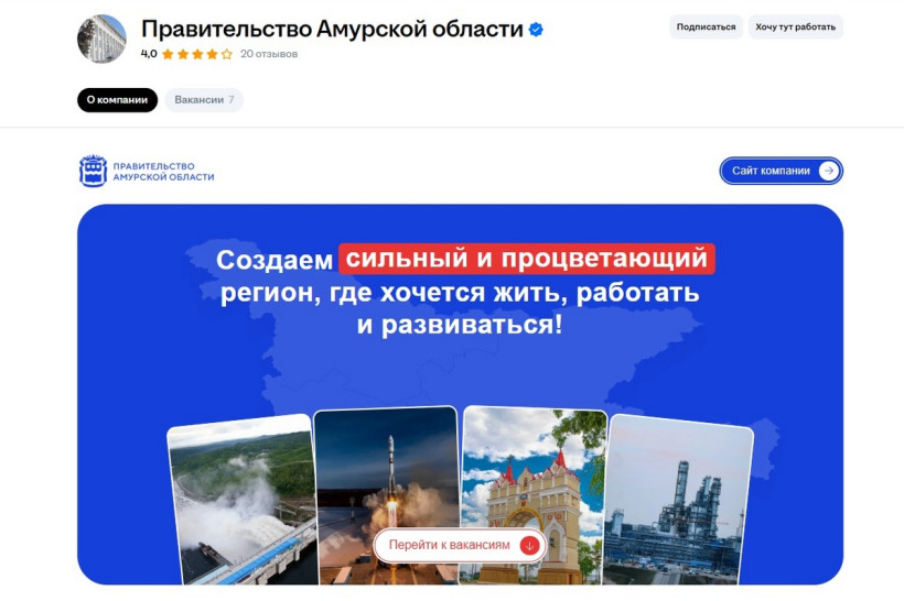 У Амурской области появилась своя брендированная страница на популярном сайте по поиску работы