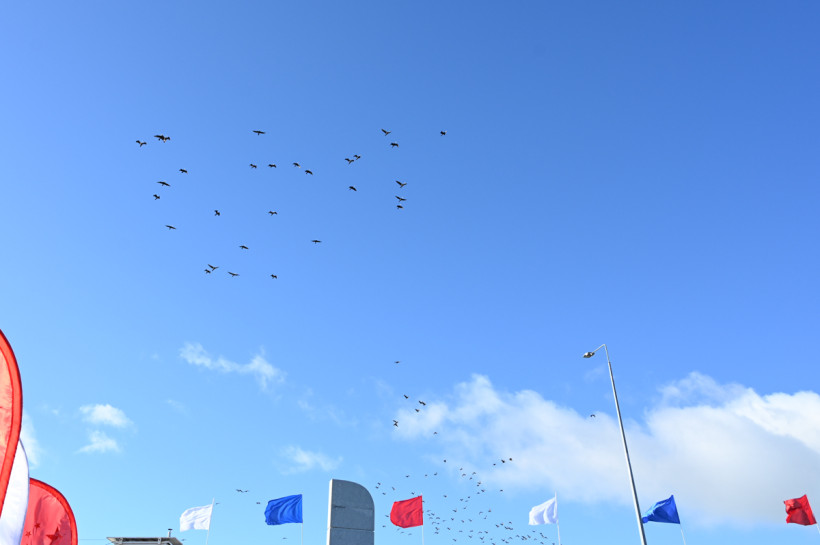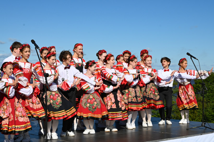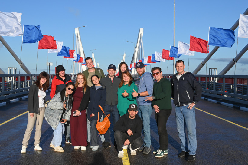 За час да старта под пристальным контролем пограничников по новенькому асфальту мостового перехода шагают, а порой и бегают организаторы, волонтеры и журналисты. А на смотровой площадке у моста распевается образцовый академический хор «Детство».