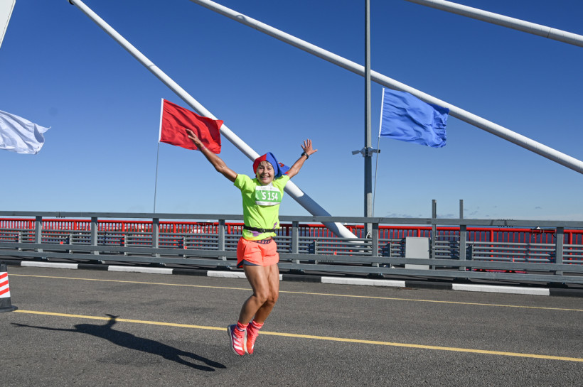 — Удивишь! — возражает председатель и главный вдохновитель клуба Альбина Попова. — Этот забег был очень долгожданным! Мы так его ждали, так ждали! Когда в 2017 году возник наш проект и мы узнали, что строят мост через Амур, то загадали, что когда-нибудь по нему обязательно побежим!