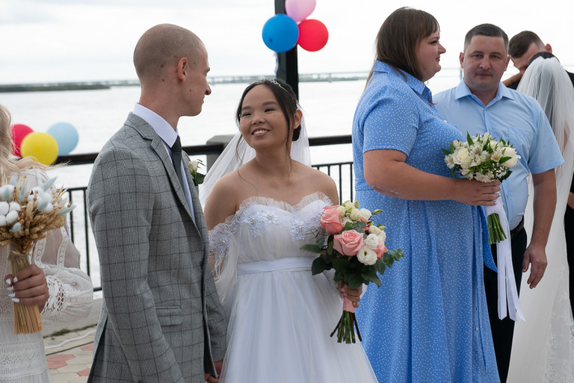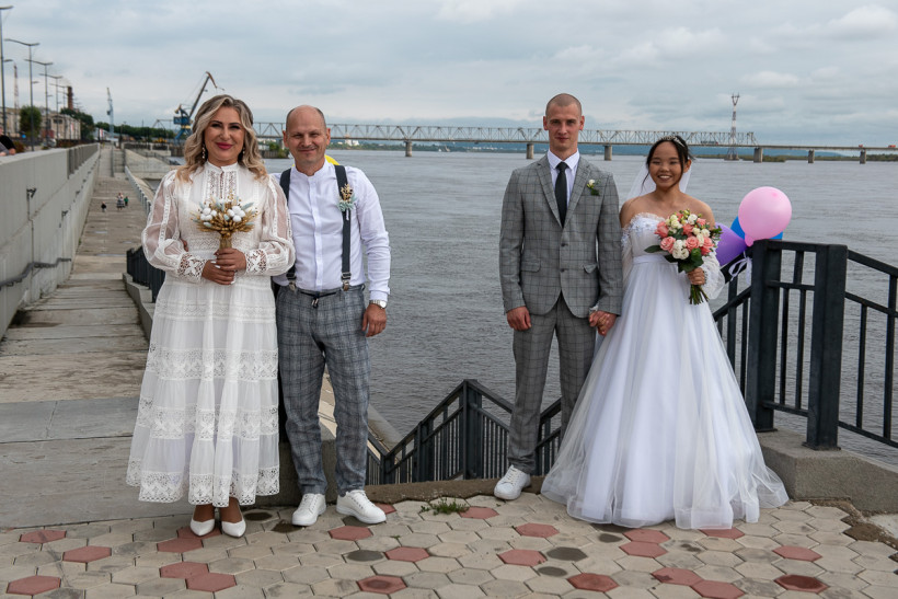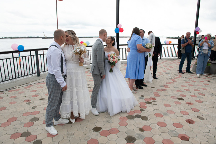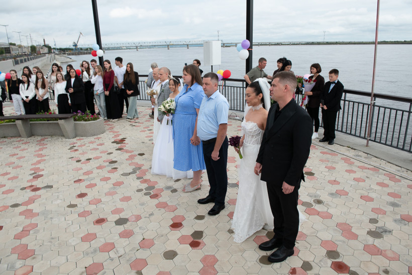 Любовь в амурском стиле: как четыре пары одновременно сказали «да» на набережной Зеи в Благовещенске
