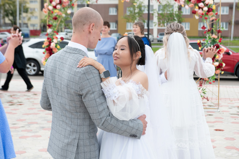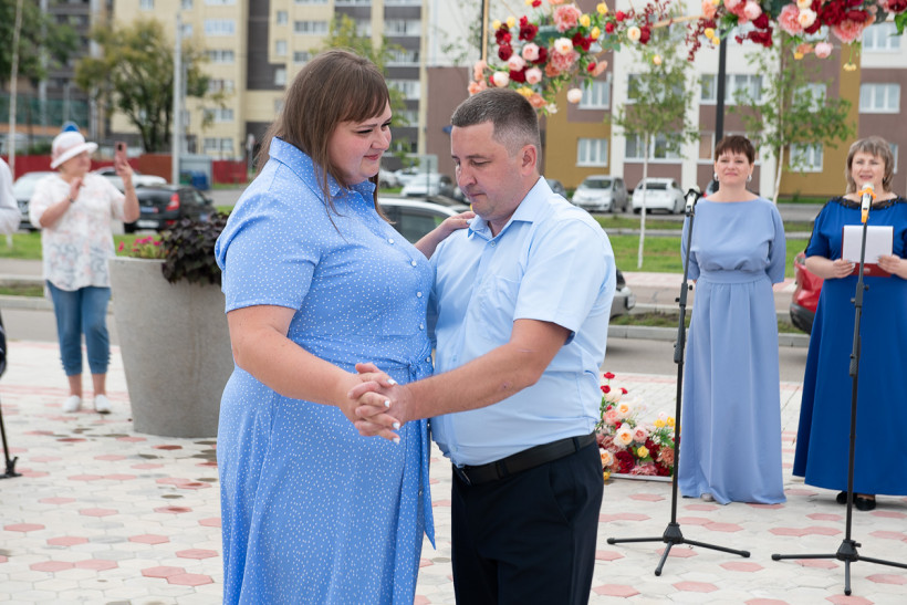 История Юлии и Андрея Васильевых началась три года назад на работе в Свободном. За это время симпатия переросла в глубокое и осознанное чувство. Как признаются сами молодожены, до официального бракосочетания их отношения развивались так естественно, что классического предложения руки и сердца не потребовалось — они совместно пришли к решению пожениться. В апреле молодые подали заявление и с приятным удивлением узнали, что свою свадьбу будут играть на таком масштабном торжестве. От переживаний во время церемонии Юлия не смогла сдержать слез.