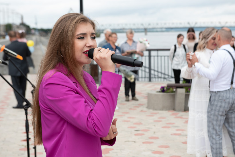 Одной из самых молодых пар стали Илья и Лиана Гуртовые. Они познакомились девять месяцев назад в торговом центре. Лиана выбирала новую одежду для своей дочки. Илья увидел девушку и сразу же влюбился. Когда молодые люди подавали заявление на регистрацию брака, сотрудники загса предложили провести ее на набережной Зеи. Такого подарка пара не ожидала и была приятно удивлена.