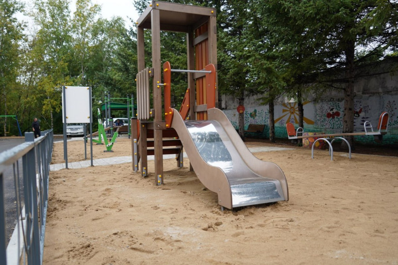 Двор в Свободном впервые за 40 лет получил новую игровую зону и асфальт
