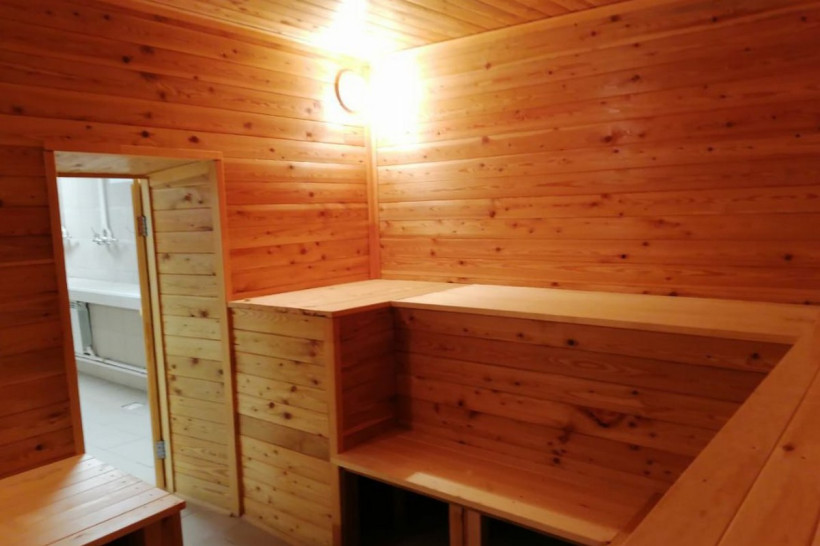 Строители восстановили кровлю и фасад здания, провели монтаж систем отопления и водоснабжения. Также выполнили отделку вестибюля, окрасили стены, выложили керамогранитную плитку, установили новые двери. Парные утеплили и обшили деревянной рейкой. Кроме того, подрядчики смонтировали в бане печи, провели теплоизоляцию семейной сауны, установили пожарную сигнализацию.