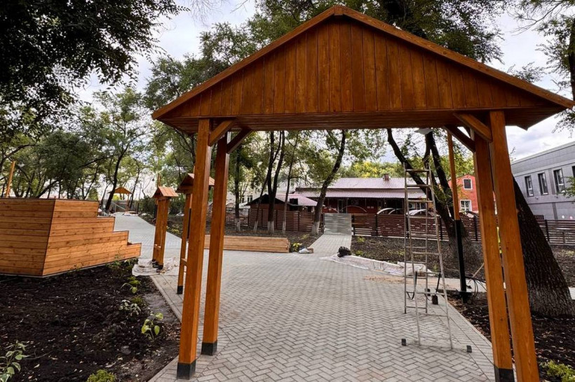 Совсем скоро в Благовещенске откроется новое пространство для прогулок. В районе пересечения улицы Ленина с переулком Святителя Иннокентия завершается реконструкция сквера об амурском купечестве. Технически объект готов на 90 процентов. Осталось нанести последние штрихи.