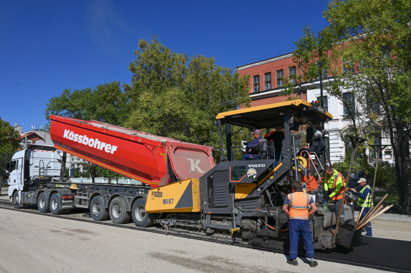 — Протяженность участка, на котором мы работаем, 1 650 метров, это шесть кварталов, — рассказал начальник строительного управления Евгений Осадчий. — Мы приступили к исполнению контракта в начале августа — ждали, когда смежные организации выполнят все работы по устройству тепловых сетей и сетей водоснабжения. Здесь уже установлен бордюр, уложена дорожная одежда, закончены работы по переустройству ливневой канализации. Сейчас начали укладку нижнего слоя асфальтобетона от Мухина и Артиллерийской, планируем сделать это за полутора суток, потом нужен перерыв, после чего уложим верхний слой.
