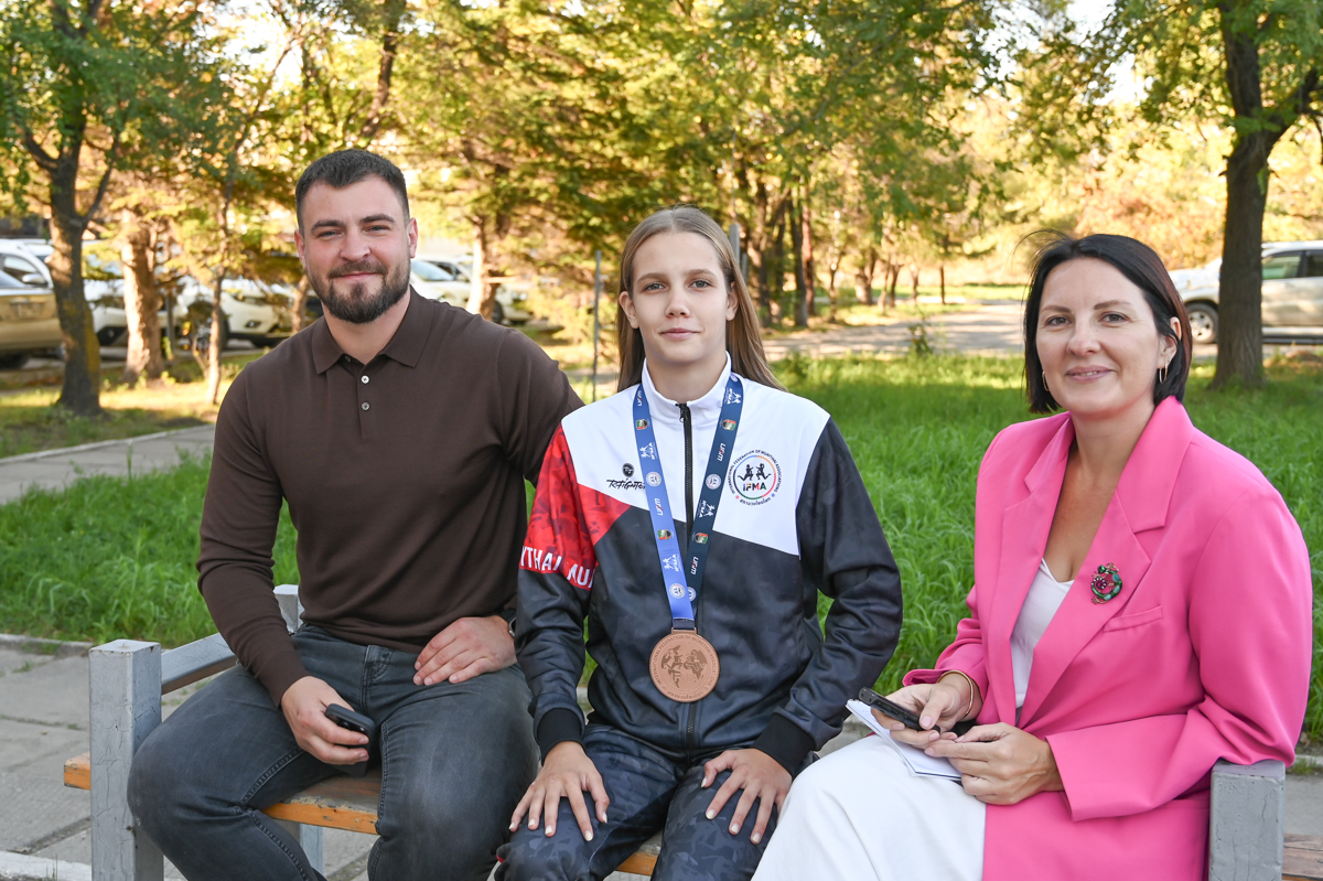 — Меня очень поддерживает Амурская федерация муайтай, я благодарю руководителя Андрея Юрьевича Домашенкина. Спасибо министерству спорта, моему тренеру, который вкладывает в меня и моих одногруппников много времени и сил. Я очень благодарна близким. За меня всегда болеют и переживают, смотрят трансляции у экранов, и я это чувствую. На соревнованиях со мной всегда мама. Мамы моих одногруппников тоже ездят, и они так болеют за нас, кричат изо всех сил. Это круто! Моя мечта — поехать на турнир всей нашей командой на первенство мира и покорить его! — признается чемпионка.