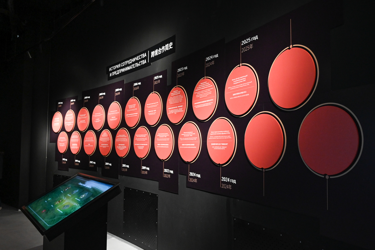 Самый серьезный зал — «Развитие». Он посвящен экономическому и образовательному партнёрству. На стенах — важные вехи развития сотрудничества двух стран, начиная от 1988 года. Последние круги пустые: наша история продолжает развиваться, и здесь еще будет что написать. Подойдя к большому табло, можно выбрать направление: логистика, туризм и так далее. Интерактивная панель расскажет о важнейших совместных проектах: автомобильный мост Благовещенск—Хэйхэ, газохимический кластер, канатная дорога через Амур и другие ключевые точки сотрудничества.