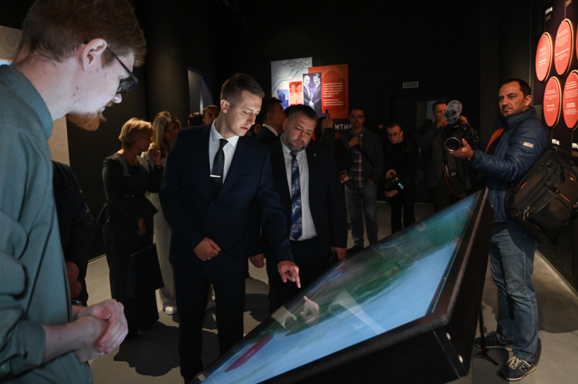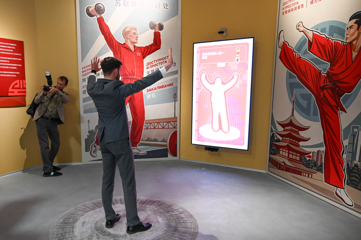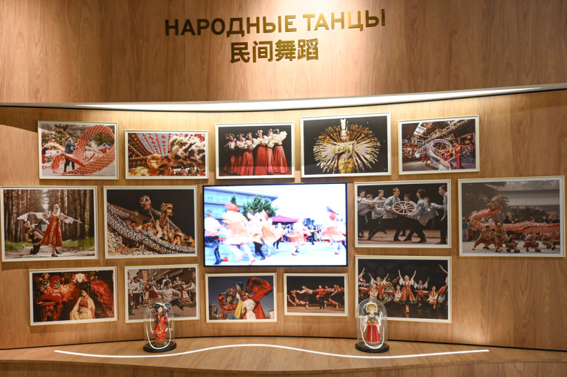 Рядом — все, что касается танцев обеих стран: фотосюжеты различных представлений и танцевальных стилей России и Китая. Ну, а справа расположились четыре двухсторонних стенда с изображениями лидеров обеих стран и информацией о них. У каждого стенда есть трубка: если приложить ее к уху, вы услышите, как герои лично начнут свои рассказы.