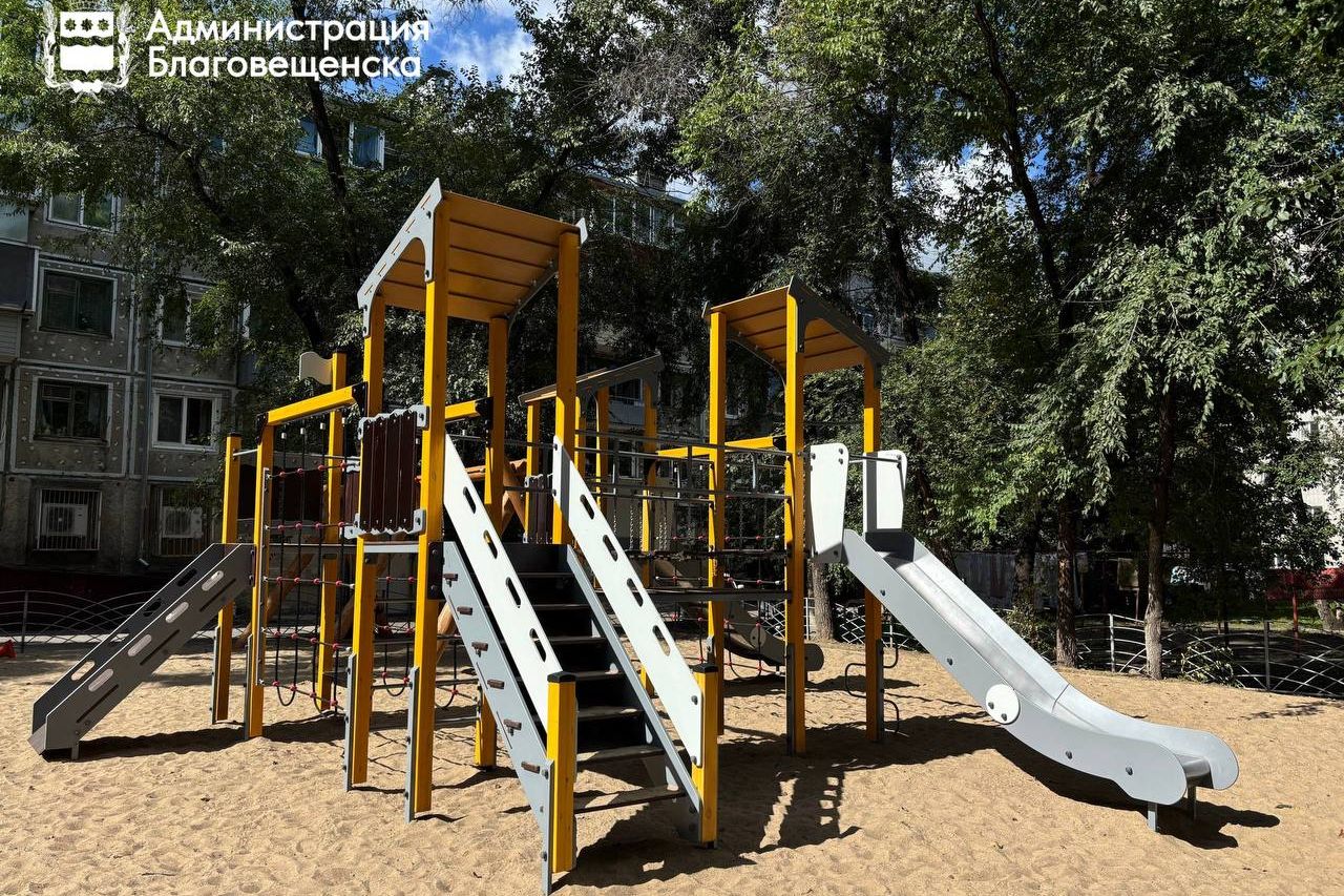 Дворы на Чайковского, 26 и Пионерской, 3-3/1 обзавелись горками, качелями, каруселями, тренажерами, а также лавочками и урнами. Сейчас они ждут приемки. Все дизайн-проекты по благоустройству в столице Приамурья разрабатывал Центр развития территорий совместно с жителями города.