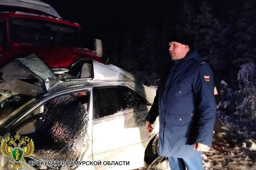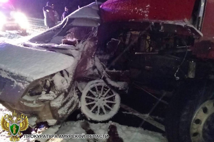 Дорожно-транспортное происшествие со смертельным исходом случилось вечером во вторник на 1184 километре федеральной трассы «Амур», в районе поселка Ушумун. По информации прокуратуры Амурской области, которая взяла на контроль установление обстоятельств ДТП, на заснеженной трассе «Тойота» столкнулась с грузовым автомобилем Kenworth T600. Легковушка мгновенно превратилась в груду металла, а люди в ней получили травмы, не совместимые с жизнью. Водитель автовоза не пострадал.