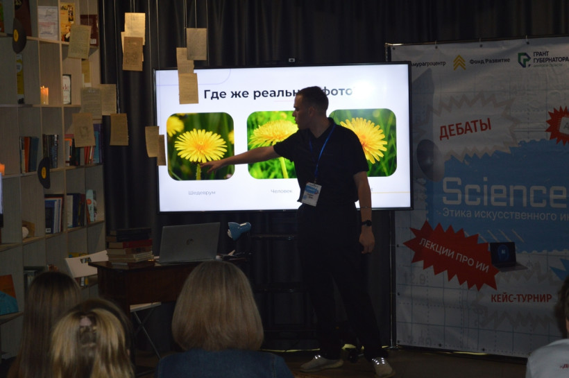 28 сентября лекцию и практическое занятие на тему «AI на службе повседневности: экономим время и силы с нейросетями» для участников провел аспирант кафедры информационных и управляющих систем АмГУ, замдиректора Центра робототехники и цифровой культуры «Амуртехноцентр» Кирилл Мокронос. После с лекцией о том, как «устроен AI: от логики до искусства» прочел преподаватель дополнительного образования в VR лаборатории Егор Головко. А телеведущий и специалист по организации мероприятий и телепроизводству Владас Дедонис, у которого за плечами уже более 17 лет профессиональной деятельности в ивент‑индустрии и на телевидении, устроил с ребятами дебаты. В этот же день молодежь опробовала разработанную нейросетью настольную игру «Код доступа» и поучаствовали в «огоньке», где высказались о прошедшем дне.