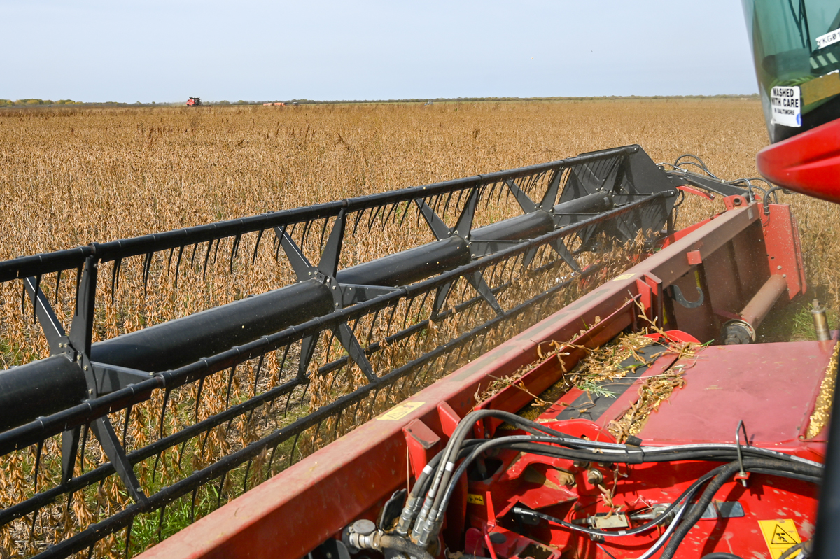 Поля хозяйства разбросаны по четырем населенным пунктам — Резуновка, Муравьевка, Корфово, Красное. Кроме сои, здесь выращивают овес: все 748 гектаров убрали, и итоговая урожайность — 36 центнеров с гектара. Также на участке около 1200 гектаров кукурузы на зерно, ее уборка стартует после сои. Главной культуре отведено около 5 тысяч гектаров.