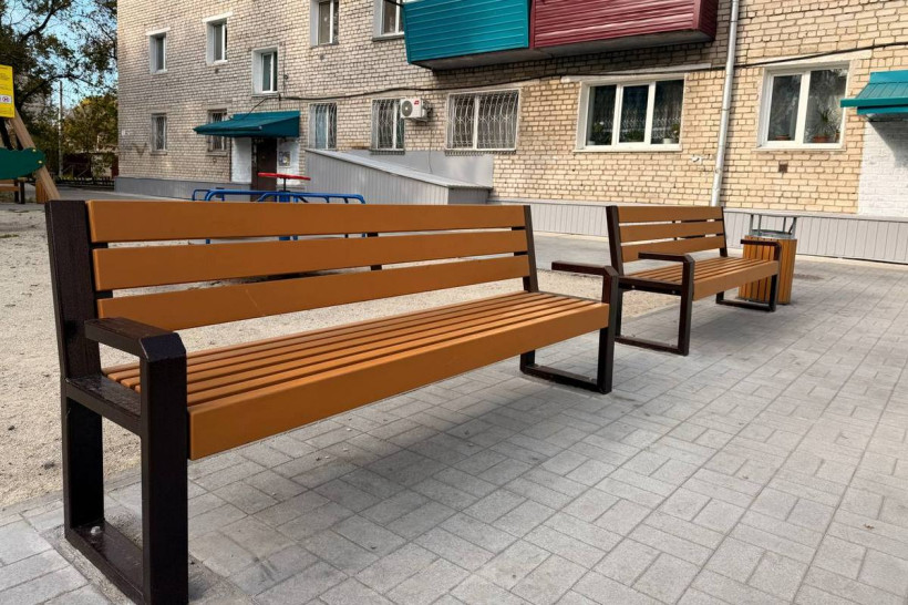 — Территория двора выложена тротуарной плиткой. Здесь установлены малые архитектурные формы — современные скамейки и урны, — рассказала специалист управления ЖКХ администрации города Белогорска Анна Шапилова.