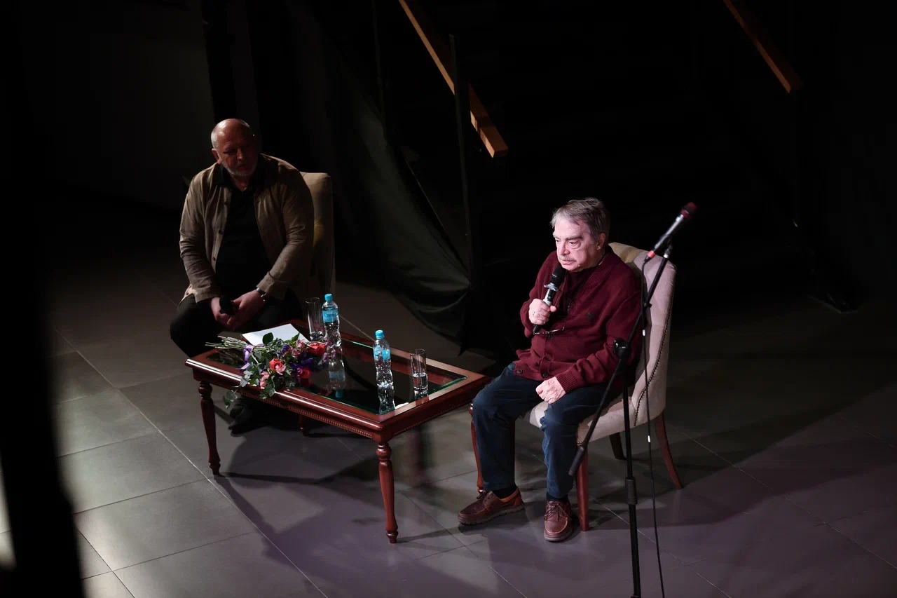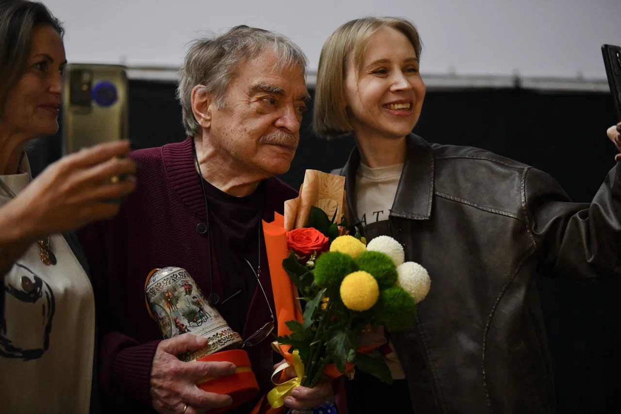 Совсем скоро на экраны выйдет новый фильм с участием Александра Адабашьяна «Двое в одной жизни, не считая собаки» (12+). Чтобы представить картину лично, актер, художник, сценарист и режиссер прилетел в Благовещенск. На юбилейном вечере не было помпезных речей и хвалебных од — казалось, зрители присутствовали на дружеской беседе двух давних друзей: Александра Адабашьяна и Сергея Новожилова.