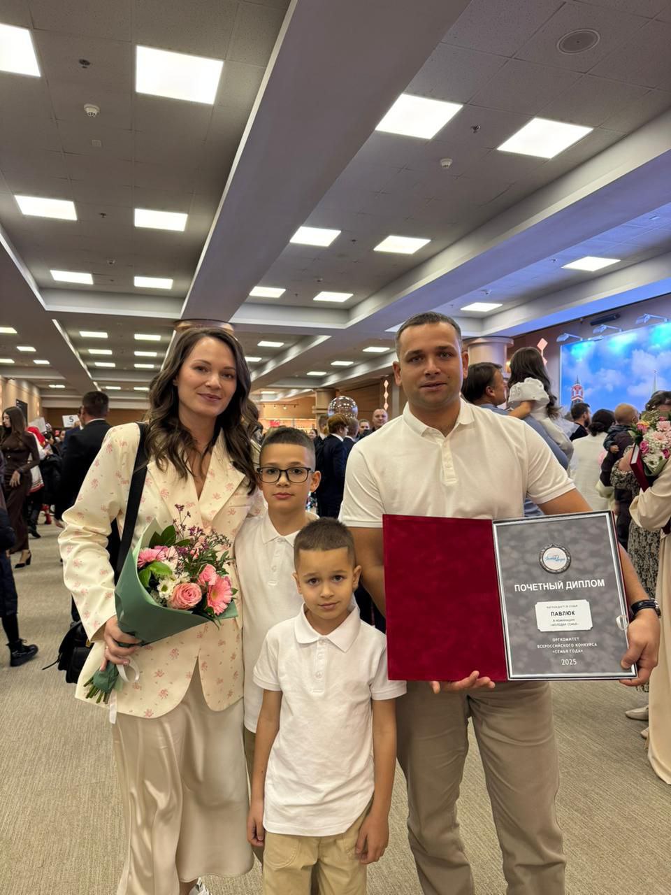 Фото: t.me/tomilovaNSБлаговещенцы выиграли в номинации «Молодая семья». Роман и Елена Павлюк вместе с двумя сыновьями оказались среди лучших в стране.