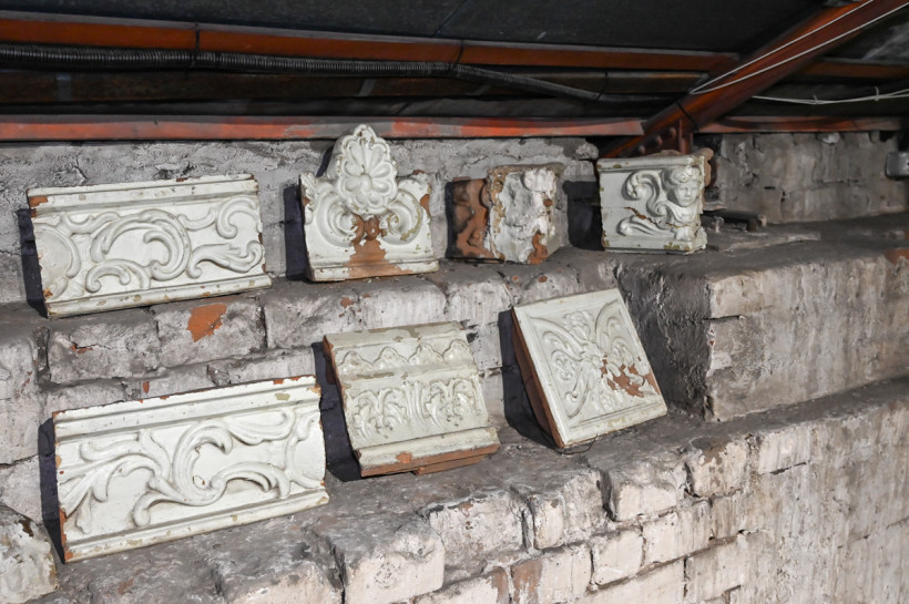 Архитектор поясняет, что всю работу выполняли вручную и, если разглядывать детали при дневном свете, можно заметить характерные шероховатости и следы пальцев. Важно, что карнизы покрывали известковым составом не столько для красоты, сколько для защиты и долговечности.