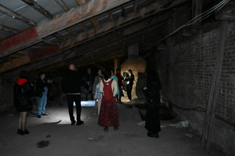 «Осторожно, наклоните голову и не пугайтесь», — предупреждает Людмила Анатольевна, и в этот момент навстречу группе с шумом взлетает стая голубей. Птицы давно облюбовали этот уголок исторической кровли и чувствуют себя здесь полноправными хозяевами.