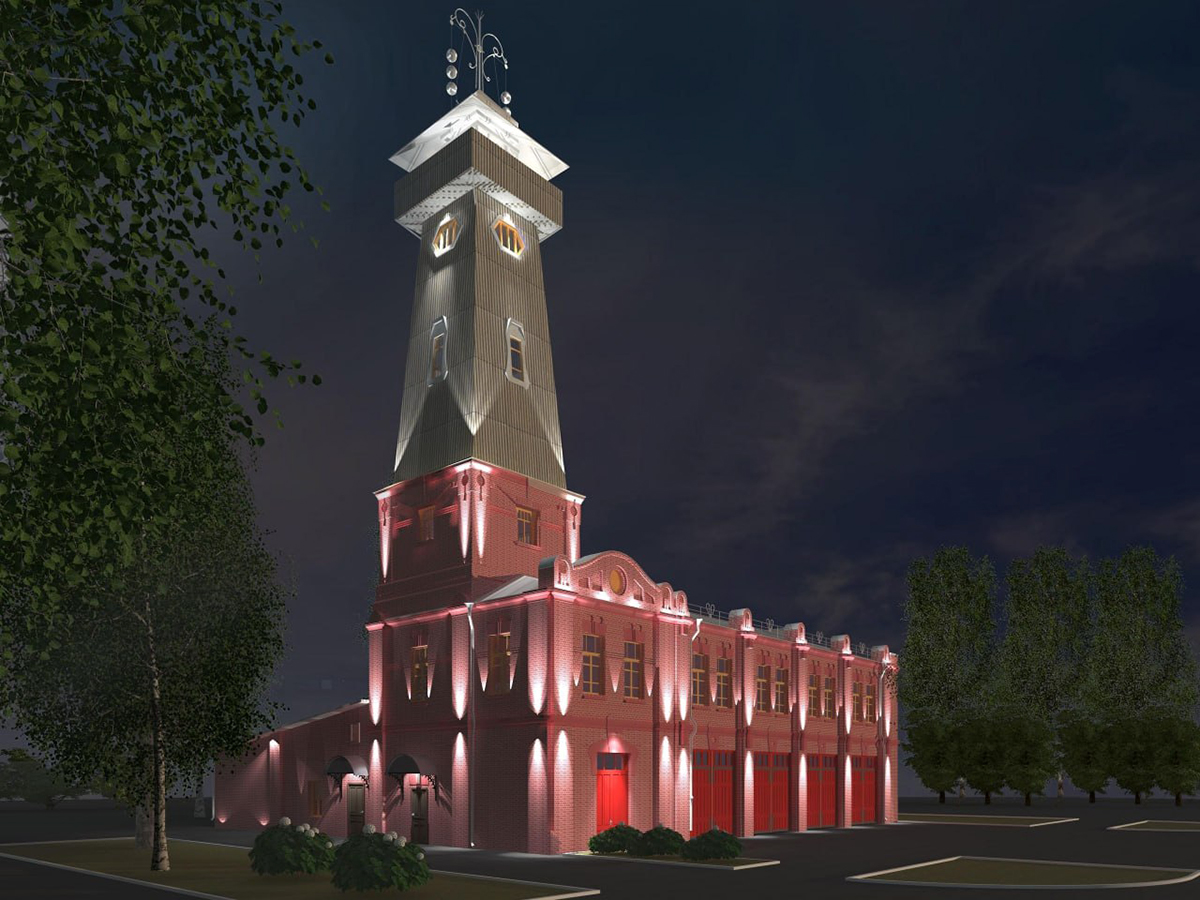 Бывшее пожарное депо построено в 1908–1909 годах. В 1914-м к зданию пристроили каланчу, которая была оснащена электрическим освещением, сигнализацией и телефоном.