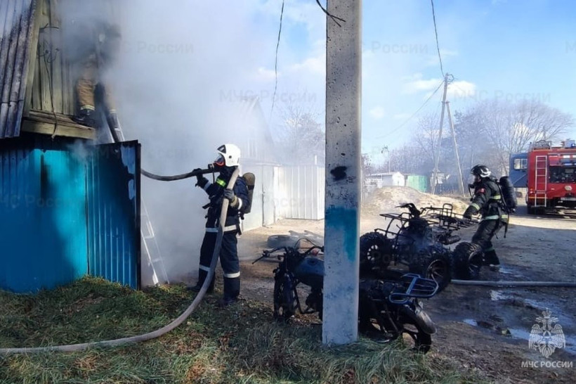 Гараж с квадроциклом и мотоциклом вспыхнул днем 21 октября на улице Комбинат Таежный в селе Екатеринославка Октябрьского округа. Через шесть минут после прибытия два боевых расчета локализовали огонь на площади 30 квадратных метров, а еще через 10 минут — ликвидировали пожар.