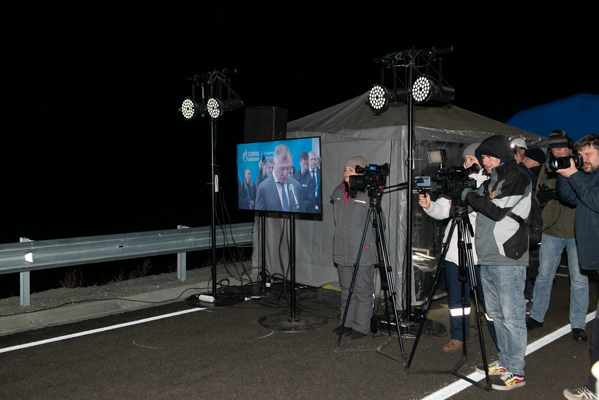 Каждый из субъектов из разных точек страны вышел на связь. Так, в Дагестане в этот момент светило теплое южное солнце, а Якутские дорожники принимали поздравления в снежной зиме. На прямую линию с нового путепровода вышли строители и представители правительства Амурской области.