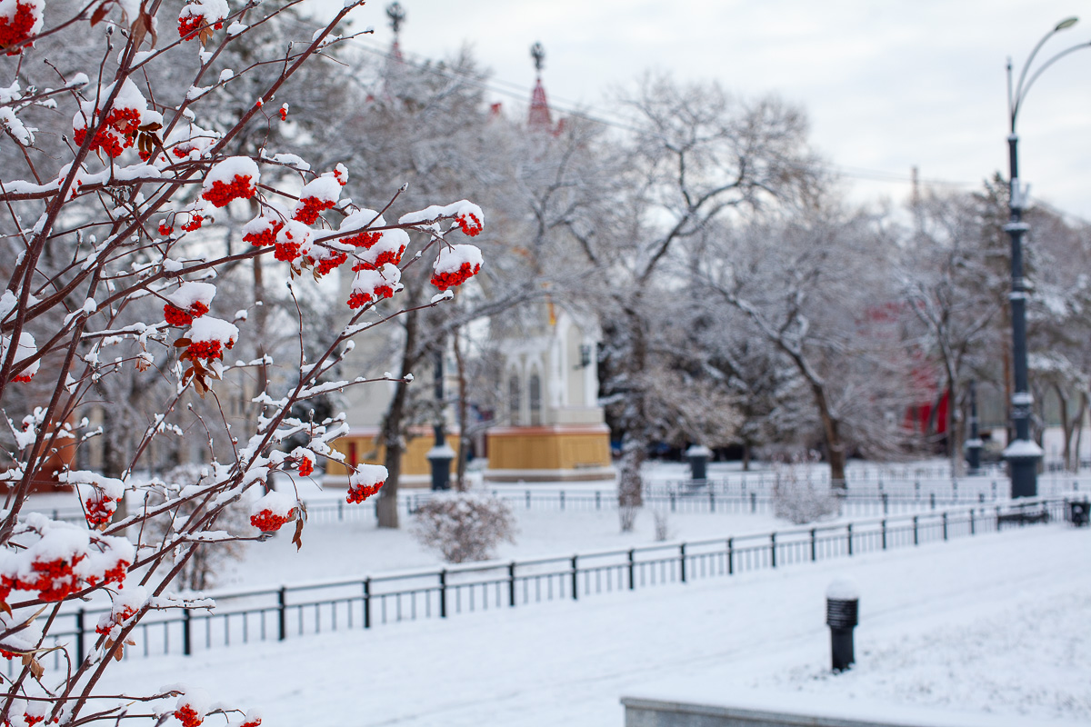 Благовещенск накрыло снегом