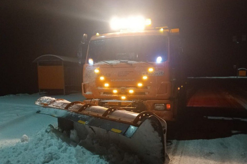 С последствиями ночного снегопада на дорогах Приамурья борются 110 спецмашин и почти 100 рабочих