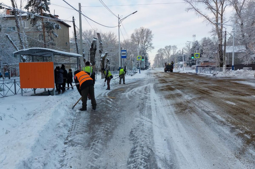 Одновременно около 100 дорожных рабочих занимаются расчисткой остановочных пунктов общественного транспорта, подъездов к ним и прилегающих тротуаров от снега и наледи.