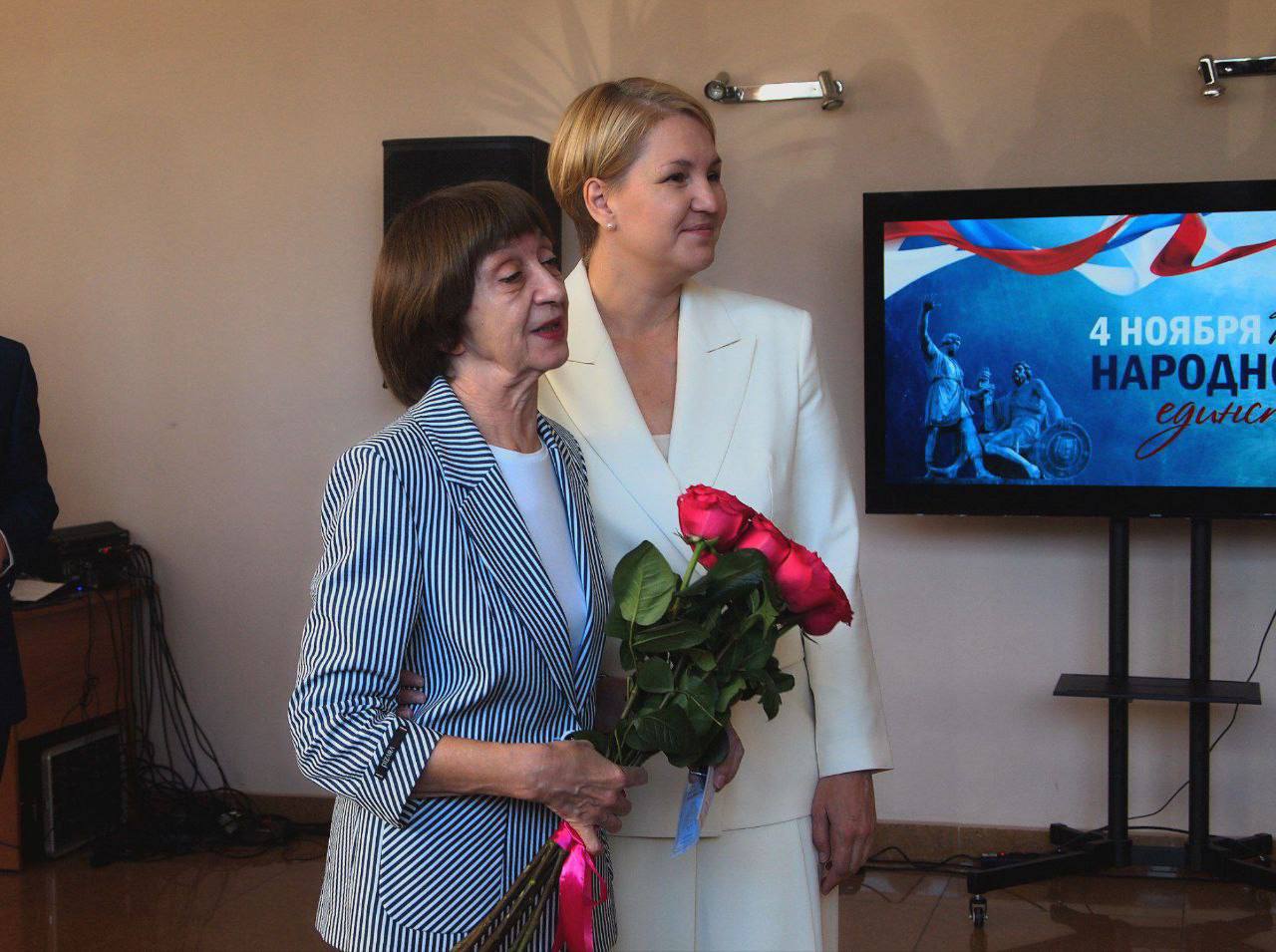 Она поздравила преподавателя с 44-летним стажем Александра Гетмана. Он заслуженный работник культуры России и отличник народного просвещения.