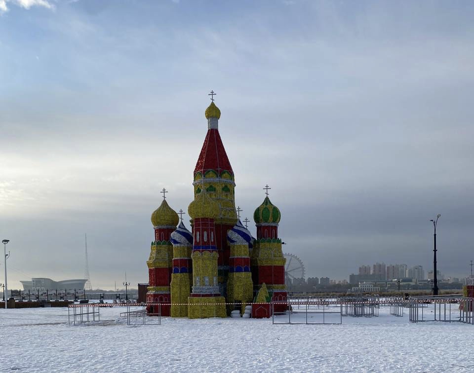 Также на набережной появилась копия Собора Василия Блаженного в Москве. Однако, частью какой новогодней инсталляции она будет являться, в мэрии не сообщили.