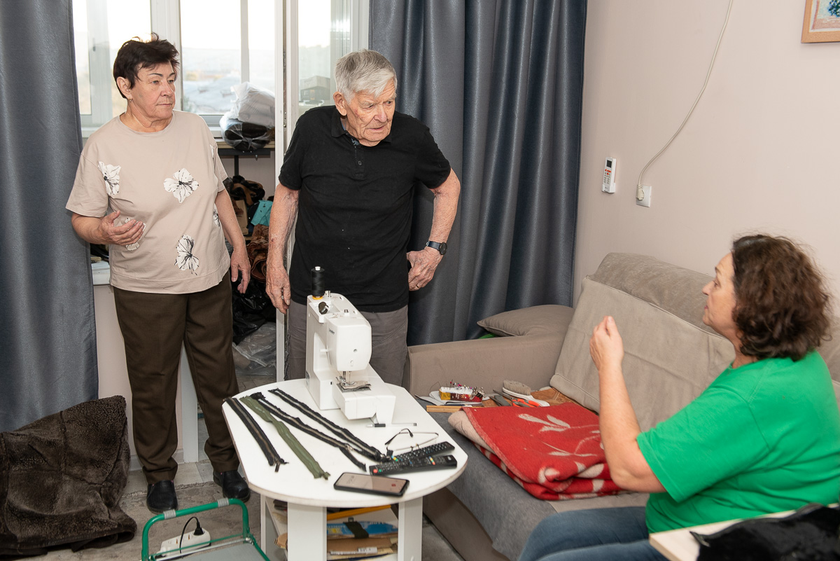 Татьяна Владимировна примерила меховую безрукавку, оценила теплые рукавицы и пятиточечники для солдат. Потом спохватилась: «Я же вам гостинцы не отдала!» Достала и выложила на стол свои разносолы и домашнее печенье. Уже собираясь уходить, поинтересовалась у Виктора Евдокимовича, обслуживается ли он соцзащитой — приходит ли кто‑то ему помогать по дому?