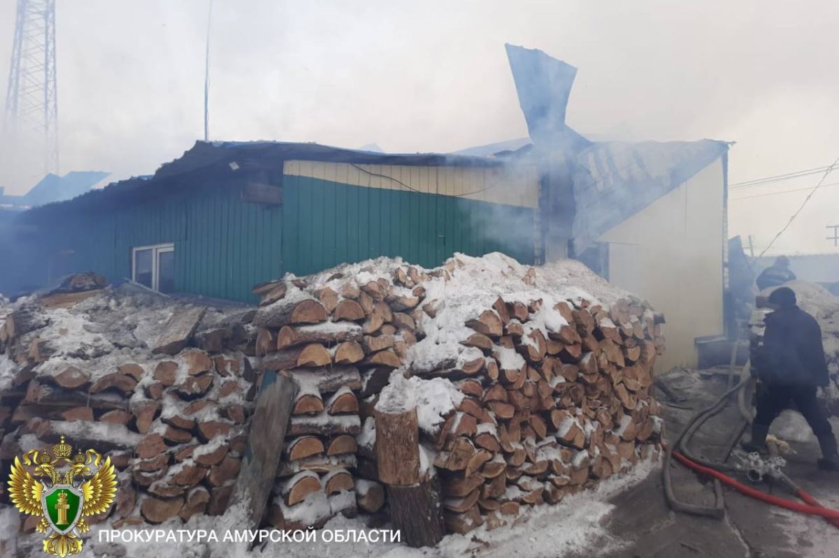Фото: Прокуратура Амурской областиПожар произошел в здании, где под одной крышей находились клуб и котельная. Одно из неэксплуатируемых помещений размером 8 на 20 метров полностью уничтожено огнем. Вторая часть такого же размера, которая отапливалась, повреждена наполовину.