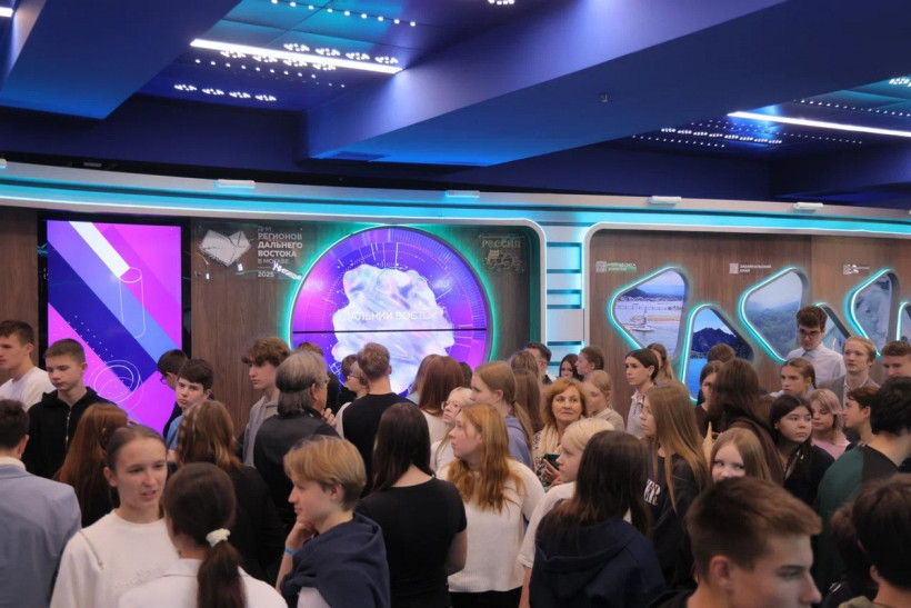 По окончании деловой программы юношам и девушкам провели экскурсию по интерактивной выставка о Дальнем Востоке, которая знакомит с уникальными возможностями для путешествий, учебы, работы и жизни, созданными при поддержке государства в этом макрорегионе. Она включает нескольких интерактивных зон и арт-объектов, объединенных в увлекательный маршрут.
