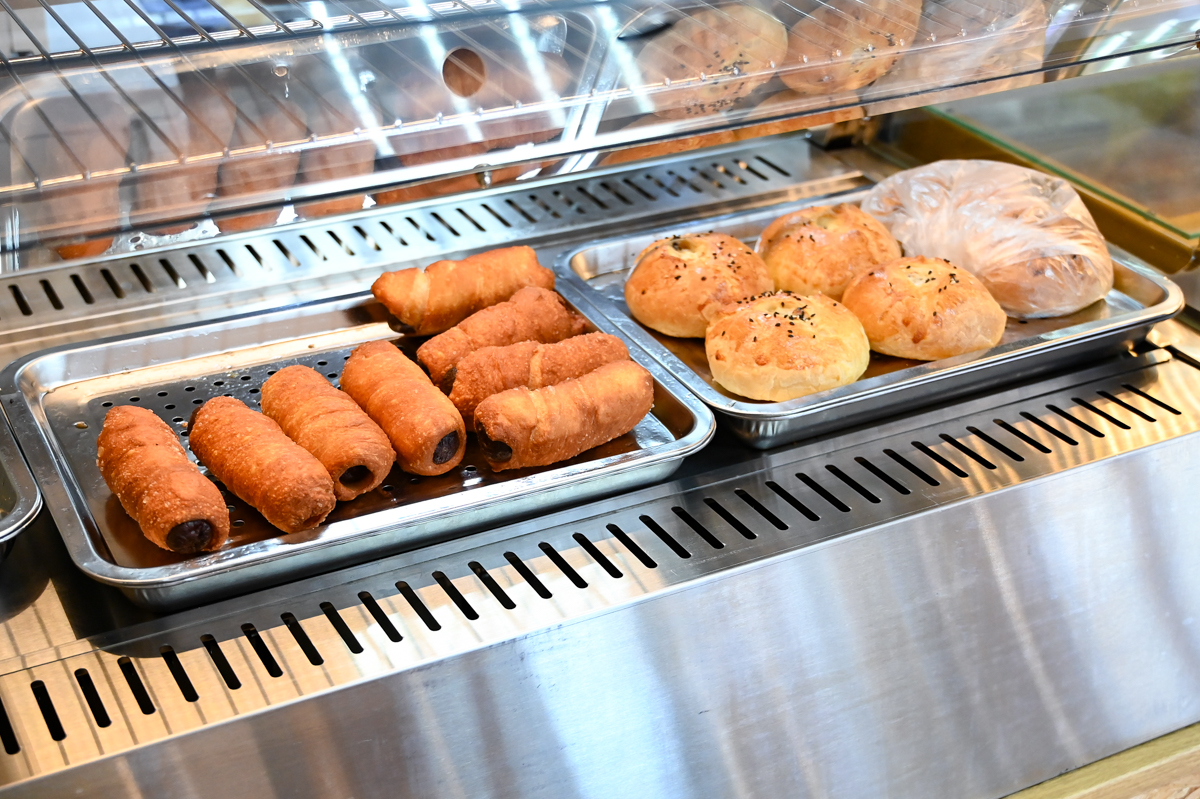 — Самое ходовое — это беляши, пирожки и пицца, — с улыбкой рассказывает хозяин заведения. — Особое место в меню занимают тройные пирожки — идея, привезенная нами из Владивостока. Посередине сосиска, с одного края капуста, с другого — картофель. Очень классная, вкусная и сытная штука.