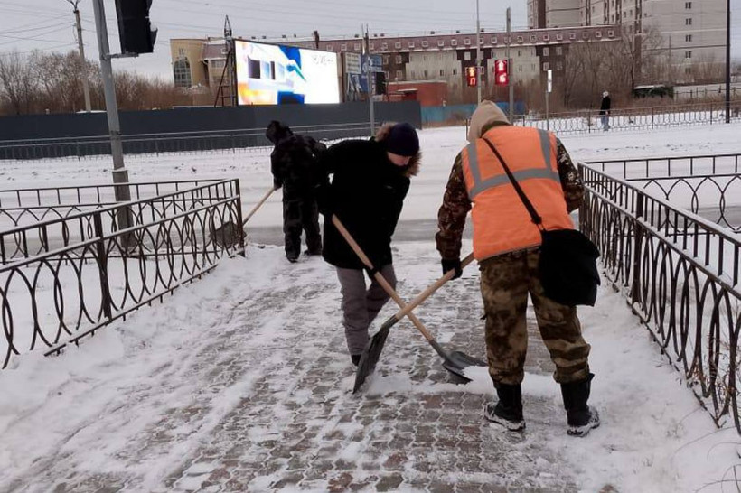 Очищают и автобусные остановки с подходами к пешеходным переходам на Игнатьевском шоссе, Калинина и Ленина. Снег убирают с тротуаров на центральных улицах, где поток пешеходов больше.