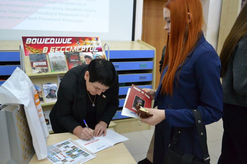 Мама Героя России Ивана Цевуна, погибшего в зоне спецоперации, презентовала собственный сборник стихов, посвященных сыну. 17 ноября в Амурской областной детской библиотеке жительница села Смелое Октябрьского района Елена Цевун встретилась с учащимися 8Б класса благовещенской школы № 17, где рассказала о жизненном пути и подвиге отважного амурчанина.