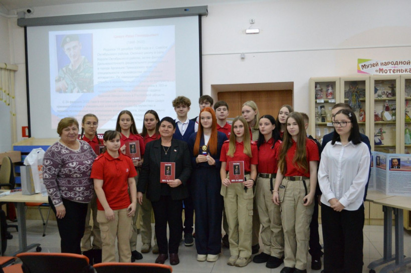 В рамках Года защитников Отечества и 80-летия Великой Победы Елена Николаевна побеседовала со школьниками и поведала им, что ее сын после срочной службы в армии перешел служить по контракту старшим механиком-водителем танка в 163-м гвардейском танковом Нежинском ордена Красной Звезды полку в Ростовской области. С 24 февраля 2022 года в составе своего подразделения Иван Геннадьевич принимал участие в СВО. В последнем бою его экипаж в жестоком и неравном бою уничтожил четыре танка противника, но последний достал русский Т-72 своим снарядом, и экипаж погиб.