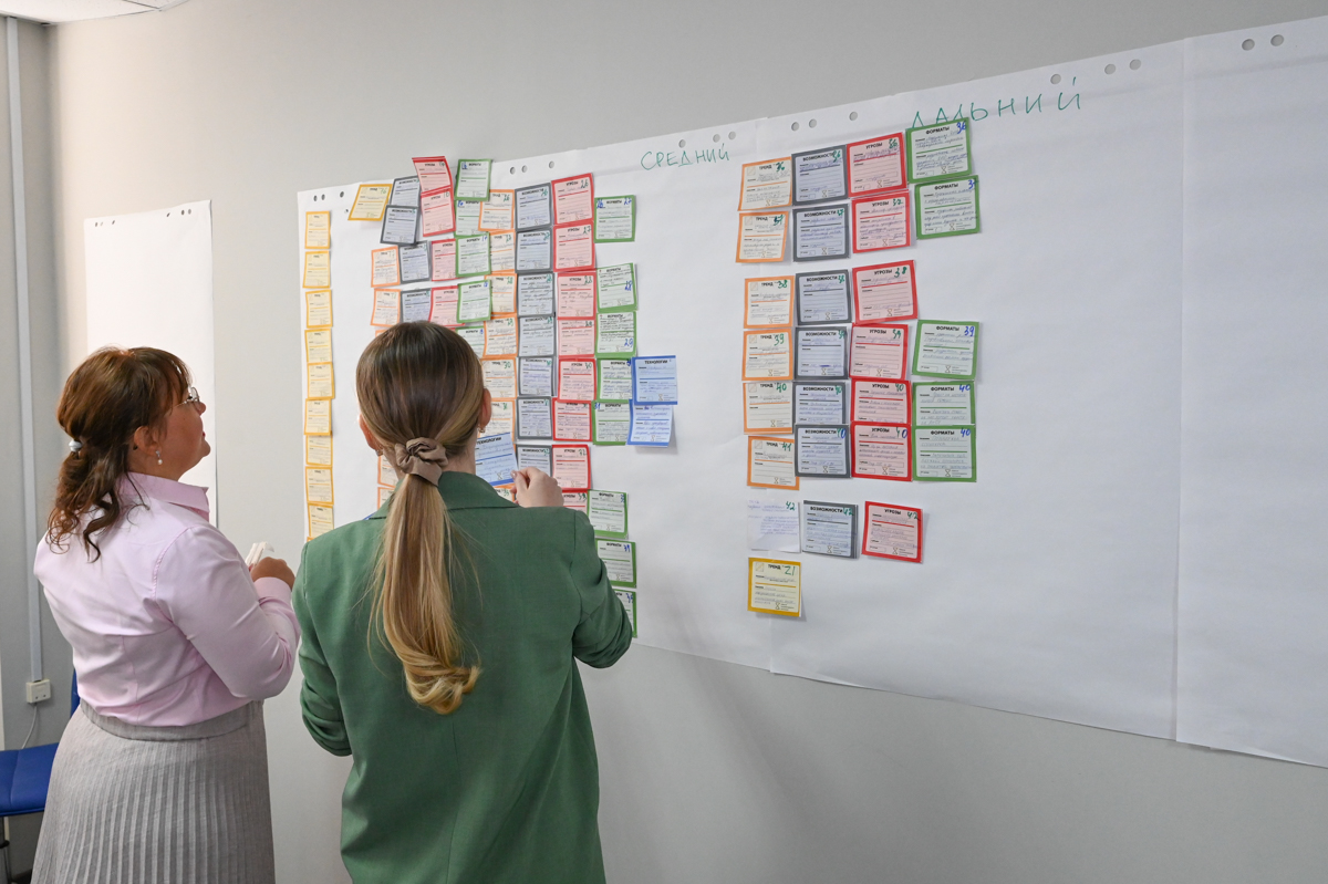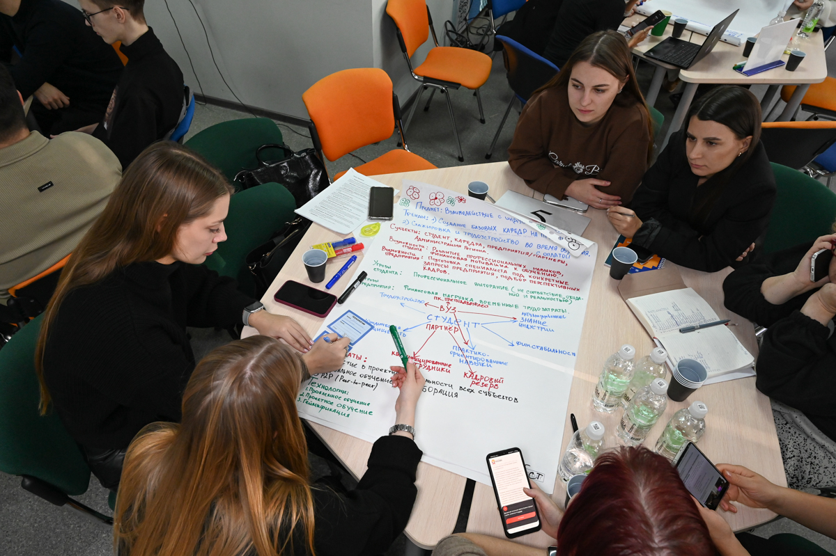 На стратегической сессии — третьем треке программы — обсуждали развитие АмГУ и своей карьерной траектории. Здесь спикеры знакомили участников с трендами в образовании, разрабатывали карту развития вуза, проектировали новые образовательные форматы и создавали свои проекты.
