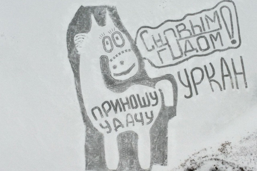 Полотном для новой открытки стал лед карьера около реки Малый Уркан. Изображение коня от верхушки ушей до копыт — 47 метров. «А вот ширину как-то забыли измерить», — посетовала Мария.